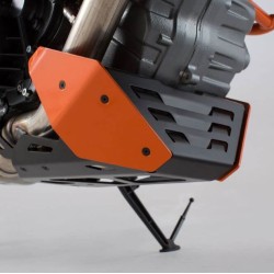 Ποδιά προστασίας κινητήρα και λαιμών εξατμίσεων από την SW-Motech. Η κατασκευή της από ενισχυμένο αλουμίνιο προσφέρει μέγιστη προστασία στον κινητήρα, στα χτυπήματα σε σταθερά σημεία ή από πέτρες που μπορεί να πεταχτούν κατά την οδήγηση εκτός δρόμου. Λόγω των ενισχυμένων βάσεων στήριξης της ποδιάς, ..